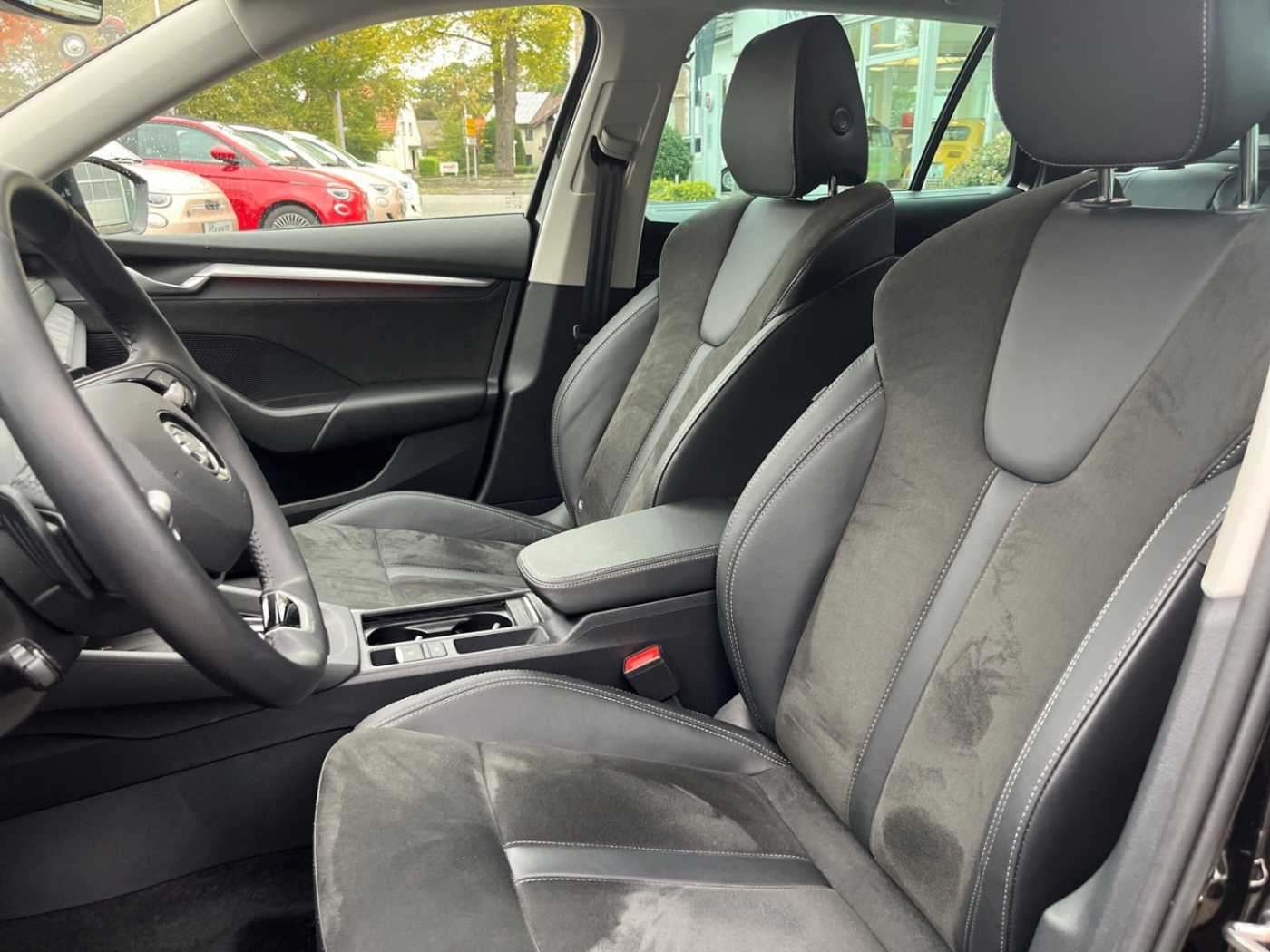 - Weiteres: Antriebs-Schlupfregelung (ASR), Reifendruck-Kontrollsystem, Geschwindigkeits-Regelanlage (Tempomat), Mittelarmlehne vorn, Scheinwerfer LED, Reifen-Reparaturkit, Getriebe 7-Gang - Doppelkupplungsgetriebe DSG, Knieairbag Fahrerseite, Verglasung getönt, Dachreling, Heckleuchten LED, Einparkhilfe vorn und hinten, Leuchtweitenregelung, LM-Felgen, Zentralverriegelung / Startanlage Kessy-Go, Seitenairbag vorn mitte (Center-Airbag), Kombiinstrument digital (virtual cockpit plus), Kindersicherung, manuell, Vorbereitung für Alkohol-Wegfahrsperre (Alcolock), Schadstoffarm nach Abgasnorm Euro 6e, Sitzbezug / Polsterung: Stoff Loft schwarz, Innenausstattung: Luftausströmer Schwarz, Infotainment-System mit 10 Display, 2 USB-Anschlüsse vorn und 2 USB-Ladeanschlüsse im Fond und USB-Ladeanschluß am Rückspiegel, Isofix-Aufnahmen für Kindersitz an Beifahrersitz und Rücksitze außen (inkl. Top Tether), Rücksitz geteilt / klappbar (60:40) Mittelarmlehne und Durchladefunktion, Interieur-Design-Paket Loft, Sitze vorn höhenverstellbar inkl. Lendenwirbelstütze verstellbar, Scheinwerfer-Reinigungsanlage (SRA), Rückfahrkamera, Frontscheibe heizbar, Leuchtweitenregelung automatisch, Sonnenschutzrollo an Seitenscheiben hinten, Sprachsteuerung für Infotainment-System, Matrix-LED-Scheinwerfer, Infotainment-System mit 13 Display, Innenausstattung: Dekoreinlagen Mutant Cocoon, Sitzbezug / Polsterung: Microfaser / Leder Lounge schwarz, Akustikglas Türscheiben vorn, Interieur-Design-Paket Lounge, Airbag Fahrer-/Beifahrerseite, Anti-Blockier-System (ABS), Außenspiegel elektr. verstell- und heizbar, Kopf-Airbag-System, Servolenkung elektronisch (Servotronic), Gepäckraumabdeckung / Rollo, Licht- und Regensensor, Rücksitzlehne geteilt/klappbar, Parkbremse elektronisch, Ambiente-Beleuchtung LED, Komfortöffnung für elektr. Heckklappe/-Deckel, 12V-Steckdose im Laderaum, Abbiege- und Allwetterlicht / Schlechtwetter-Licht, Abbiegebremsfunktion und Ausweichunterstützung, aktiver Spurhalteassistent (Lenkunterstützung), Außenspiegel elektr. anklappbar, Außenspiegel mit Abblendautomatik, Autom. Distanzregelung (ACC) mit Frontradar-Assistent (bis 210 km/h), Autom. Distanzregelung (pACC) mit vorausschauender Geschw.-Regelung, Beifahrerairbag abschaltbar, Berg-Anfahr-Assistent (Hill-Holder), Brillenfach, Climatronic 2-Zonen, Dachhimmel grau, Diebstahl-Warnanlage mit Innenraumüberwachung und Abschleppschutz, Dynamischer Fernlichtassistent (Dynamic Light Assist)