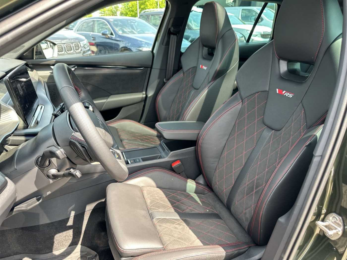 - Weiteres: Antriebs-Schlupfregelung (ASR), Getriebe 7-Gang - Doppelkupplungsgetriebe DSG, Einparkhilfe vorn und hinten, Mittelarmlehne vorn, Sonnenschutzrollo an Seitenscheiben hinten, Radioempfang digital (DAB+), Knieairbag Fahrerseite, Zentralverriegelung / Startanlage Kessy-Go, Sprachsteuerung für Infotainment-System, Seitenairbag vorn mitte (Center-Airbag), Sitzbezug / Polsterung: Stoff RS schwarz mit Ziernaht, Vorbereitung für Alkohol-Wegfahrsperre (Alcolock), 2 USB-Anschlüsse vorn und 2 USB-Ladeanschlüsse im Fond und USB-Ladeanschluß am Rückspiegel, Heckleuchten LED (Kristallglas-Optik), Isofix-Aufnahmen für Kindersitz an Beifahrersitz und Rücksitze außen (inkl. Top Tether), Kofferraumbeleuchtung, Kombiinstrument digital (virtual cockpit plus), Rücksitz geteilt / klappbar (60:40) Mittelarmlehne und Durchladefunktion, Stoßfängerblende und Heckdiffusor schwarz glänzend, Motor 2,0 Ltr. - 195 kW TSI, Navigationssystem, Seitenscheiben hinten und Heckscheibe abgedunkelt (SunSet), Infotainment-System mit 13 Zoll Display, Akustikglas Türscheiben vorn, Matrix-LED-Scheinwerfer, Sportsitze, Sitzheizung hinten, Kamerasystem 360°, Frontscheibe heizbar, Lenkrad heizbar (Sport/Leder) mit Multifunktion und Schaltfunktion, Anhängerkupplung mit elektr. Entriegelung, schwenkbar, inkl. Anhängerstabilisierung mit Trailer Assist & Adapter, Panorama-Schiebedach elektrisch, Sitze vorn ErgoSport, elektr. verstellbar (inkl. Massagefunktion, ausziehbarer Beinauflage), Seitenairbag hinten, Reserverad als Notrad (18 Zoll), Insassen-Schutzsystem proaktiv, Sound-System Canton, Winter-Paket Plus, Airbag Fahrer-/Beifahrerseite, Außenspiegel elektr. verstell- und heizbar, Kopf-Airbag-System, Rücksitzlehne geteilt/klappbar, Dachreling schwarz, hochglänzend, Funkschlüssel (3) klappbar, Multifunktionsablage unter Gepäckraumabdeckung, Komfortöffnung für elektr. Heckklappe/-Deckel, Gepäckraumabdeckung / Rollo, Sitzbezug / Polsterung: Leder / Mikrofaser, 12V-Steckdose im Laderaum, Abbiege- und Allwetterlicht / Schlechtwetter-Licht, Abbiegebremsfunktion und Ausweichunterstützung, aktiver Spurhalteassistent (Lenkunterstützung), Auffahrwarnsystem mit City-Notbremsfunktion (Frontradar-Assistent), Außenspiegel elektr. anklappbar, Außenspiegel mit Abblendautomatik, Autom. Distanzregelung (ACC) mit Frontradar-Assistent (bis 210 km/h)